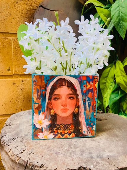 بوكس خشب عالى الجوده زرع صناعى قابل للغسيل رسم يدوى مبهج